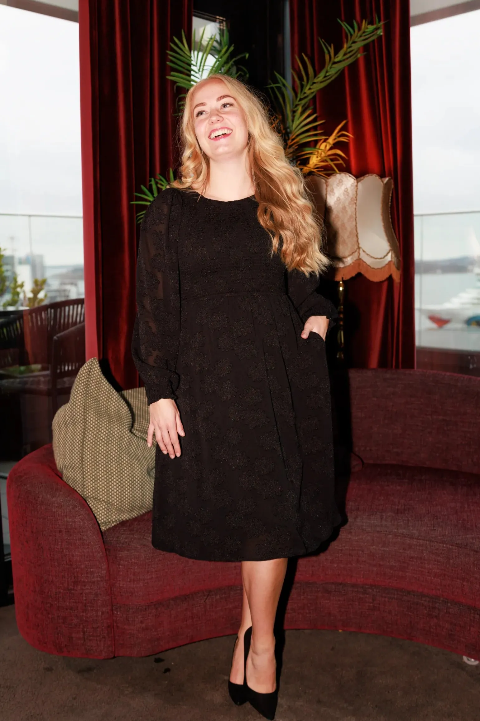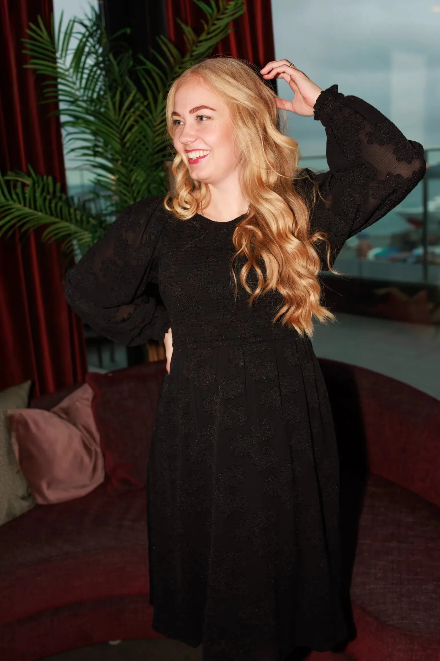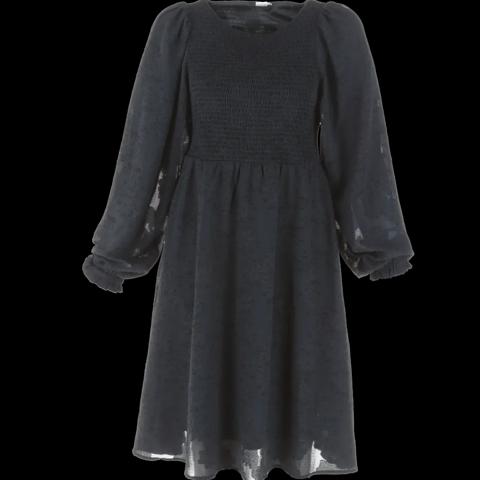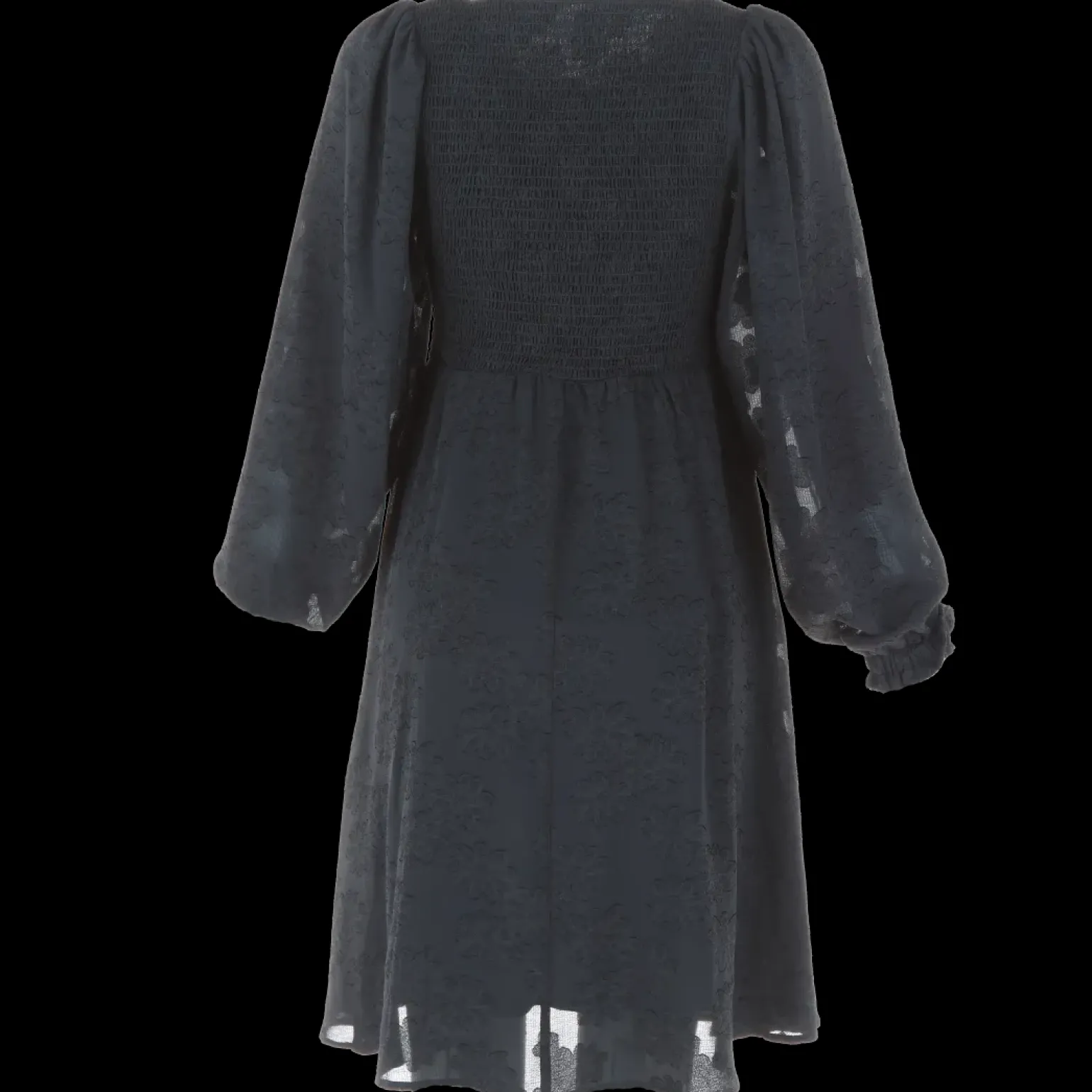 Anna chiffon kjole er en nydelig kjole til sesongens finere anledninger. Den har flatterende snitt, lekre ballongermer og smock rundt hele front og rygg for en god tilpasningsevne. Praktiske lommer på begge sider.