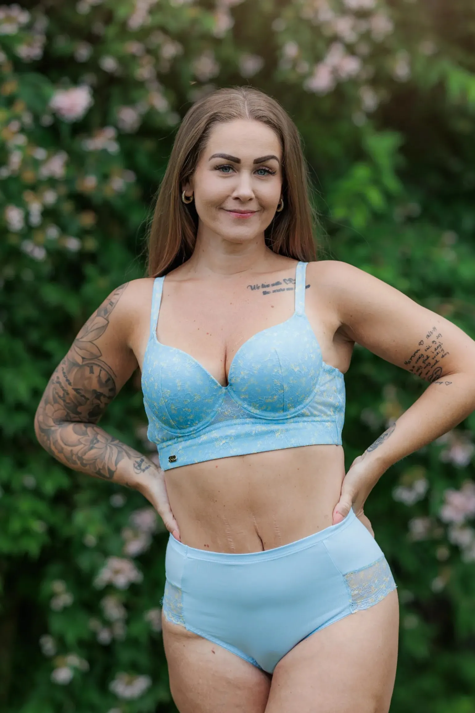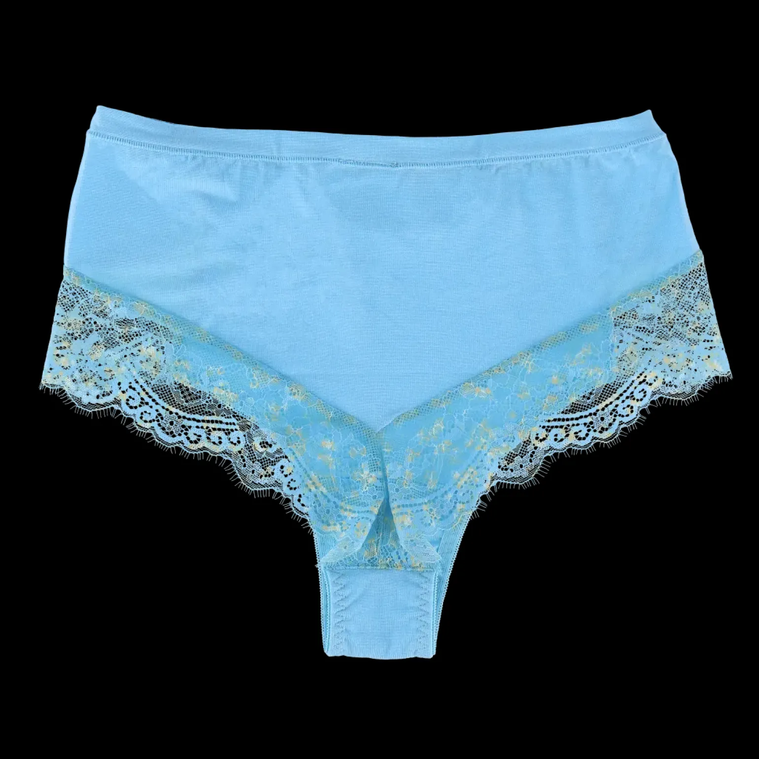 Aria Brazilian truse i lyseblå med mønster av blomster i veldig behagelig og godt stoff. Trusen er myk og ekstremt stretchy. Den strammer ingen steder og har sømløs kant i bakdelen for en fin overgang til huden.